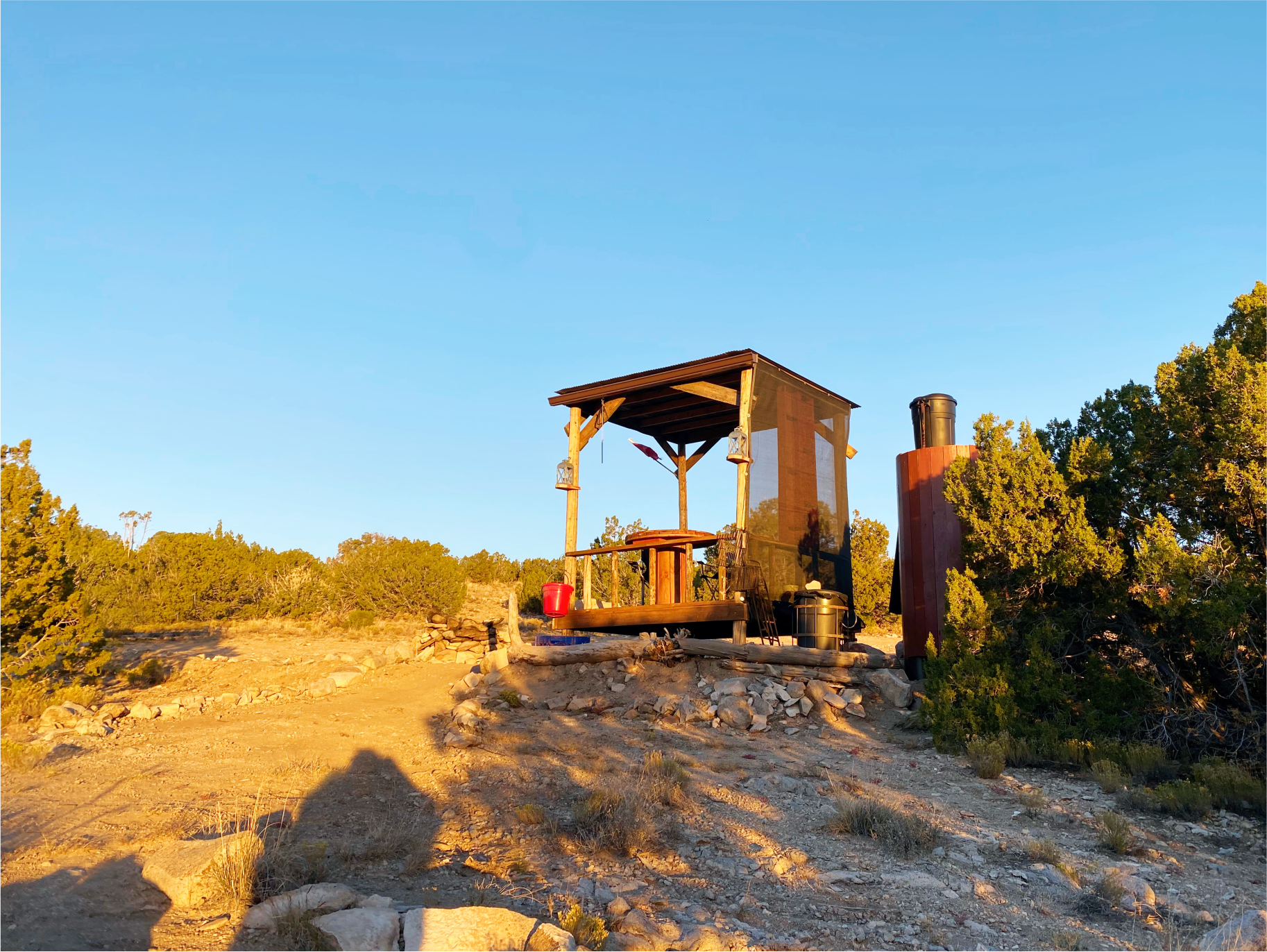 Private Canopy with catchment-latrine solar shower (Apr-Sep) filled w 40 gal. non-potable water per 2-night visit, (2) chairs, (1) table, detergent-free all body wash, bathroom tissue, human & pet bio-waste bags, disposable gloves, 7 gal. non-potable water per 2-night visit, access to area firewood, lined trash bin w/ complimentary (non-bio waste) disposal per 2-night visit.