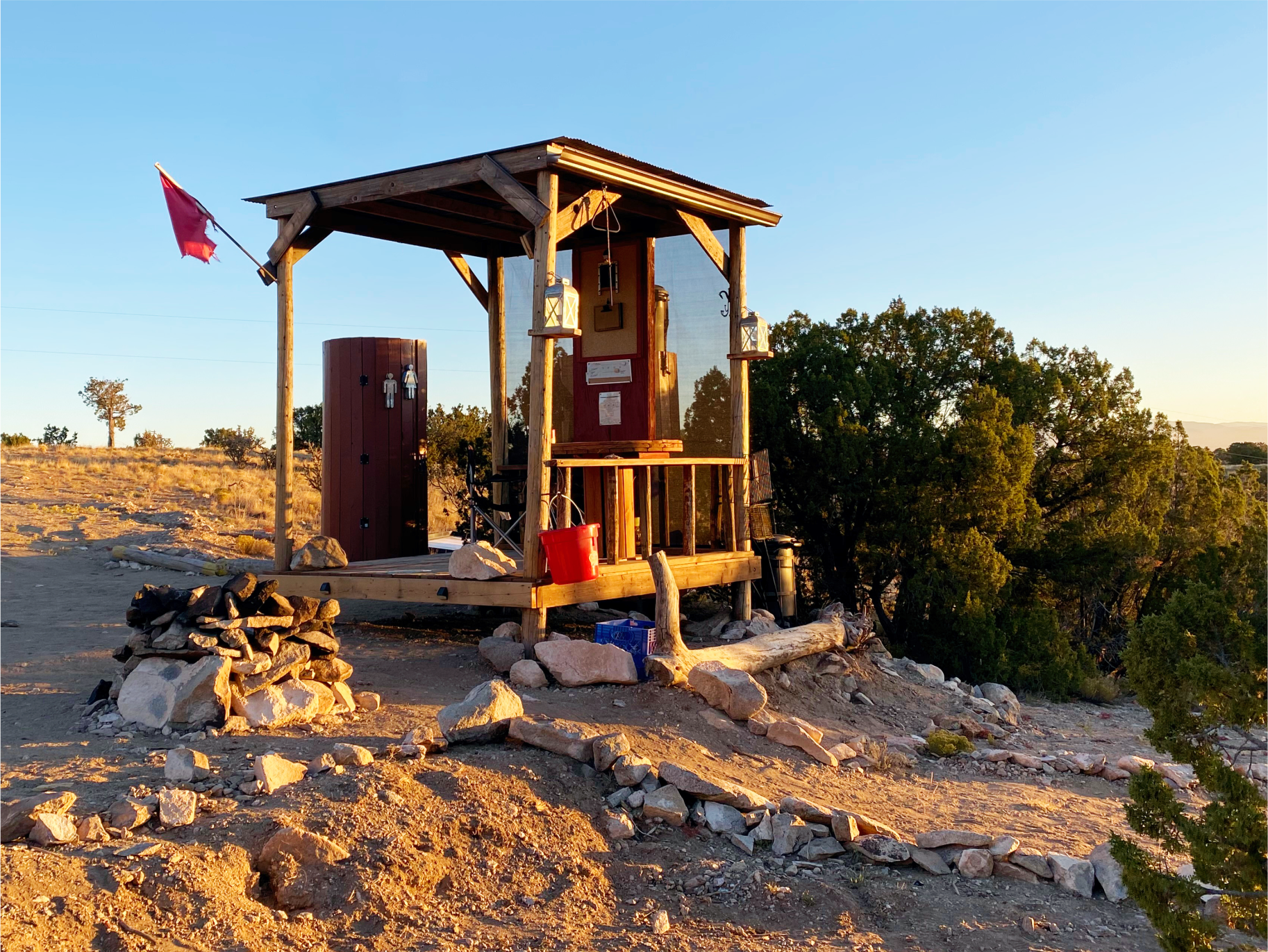 NM EPA has banned actual outhouses. The fine for burying human waste is $500 per incident. Guests must not bury bio-waste of any kind on property whatsoever.